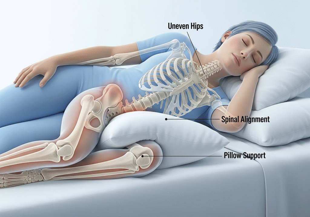 Learn how to sleep with uneven hips comfortably: easy positions, pillow hacks, stretches and mattress tips to reduce pain and improve rest tonight.